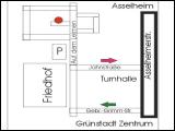 Sie fahren ab von der A6 Abfahrt Grünstadt/Bad Dürkheim. Im Kreisverkehr in Richtung Grünstadt Zentrum. Sie folgen der Hauptstraße durch den Ort hindurch und biegen kurz vor dem Ortsausgang Richtung Asselheim direkt nach der LVM- Agentur auf der linken Seite links in die Gebrüder-Grimm-Str. ein (Einbahnstr.). Die Rückfahrt erfolgt über die Jahnstraße (Einbahnstr.). Hinter dem Friedhof beginnt "Auf dem Leimen" Sie biegen in die zweite Straße links ein. Ziel erreicht! |
