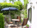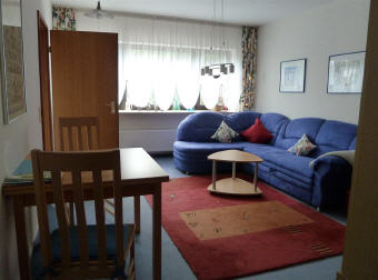 Komfort-Apartment, ca. 38qm, 2 - 3/4 Personen (max. 2 Erw. + 1-2 Kinder), 1-2 Personen bei längerfristiger Anmiete, gute Ausstattung, gr. Wohnbereich mit Schlafcouch, Essecke, abgeteilter Schlafteil (Raumteiler) mit 2 Betten, kl. Küche, Dusche/WC, Diele, eigene Südterrasse m. Gartenmöbeln, eigener Eingang, inkl. Bettzeug und Handtücher (nur bei Kurzzeitmiete bis 2 Wochen).